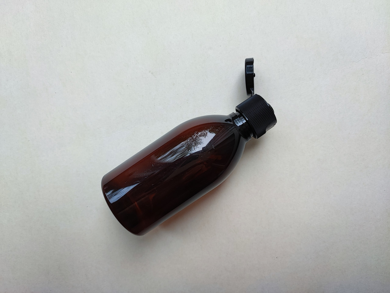 100 - 107 мл Круглий коричневий з кришкою чорною фліп-топ 20 мм, ПЕТ пляшка, флакон, ємність, пластиковий, пластмасовий