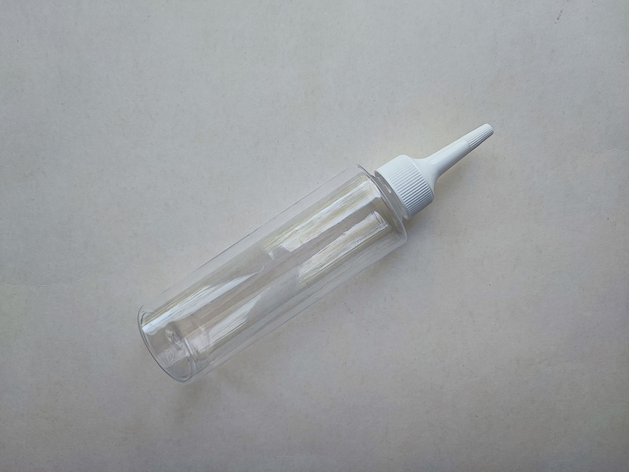 150 мл/24мм флакон ЦИЛІНДР ПЕТ прозорий з білим довгим носиком 24 мм, пляшка пластикова, пластмасова, баночка