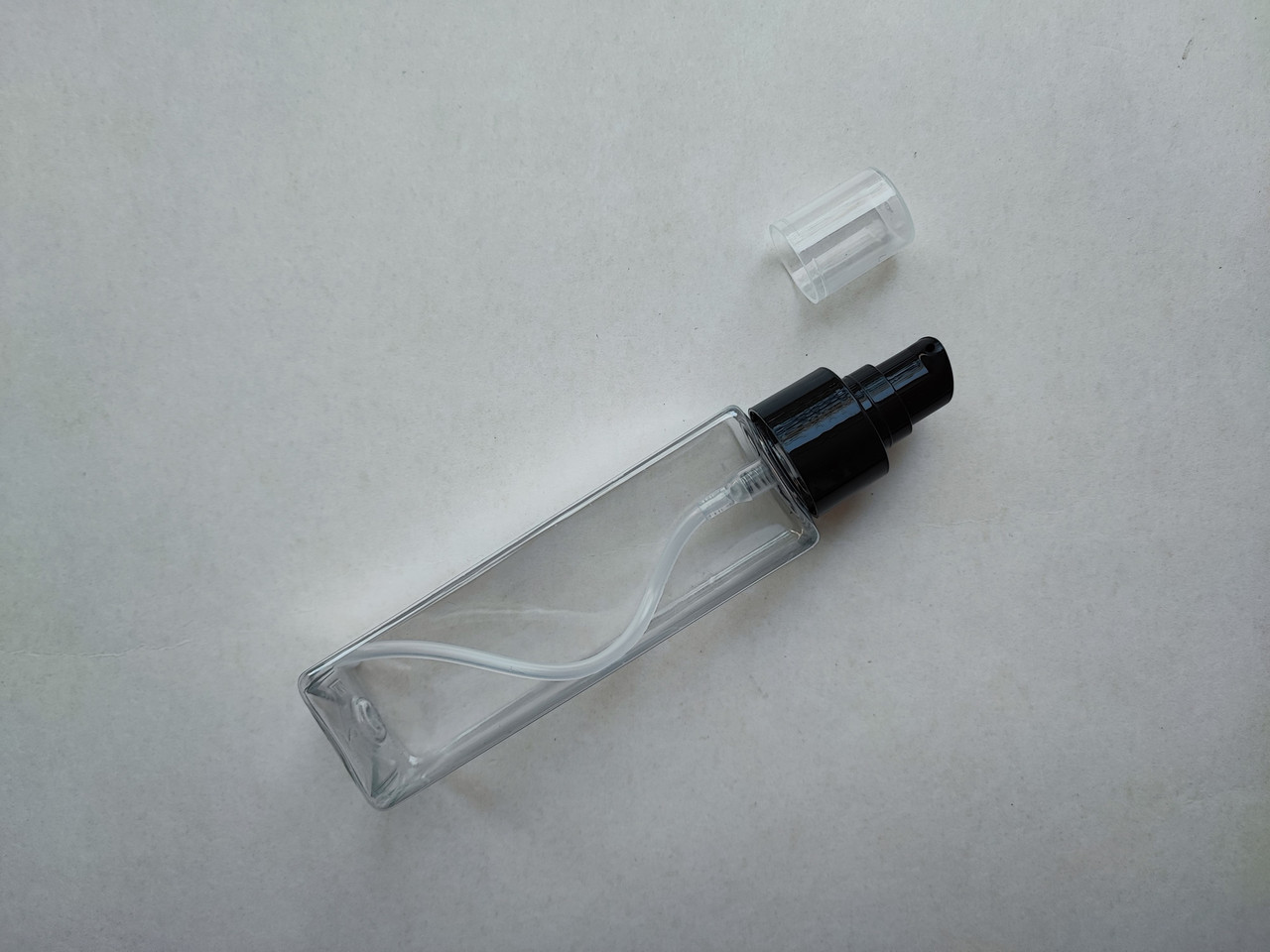 100 мл/24мм флакон КУБ ПЕТ з кремовим чорним дозатором 24/410 кругла пляшка, флакон пластиковий, атомайзер