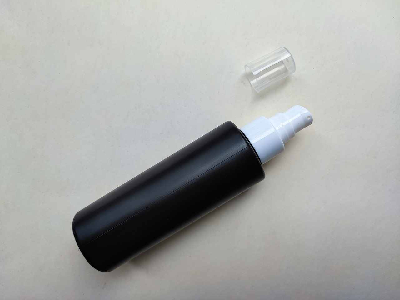 150 мл/24мм Поліетилен, HDPE чорний ЦИЛІНДР з кремовим білим дозатором 24/410 кругла пляшка, флакон, ємність пластикова
